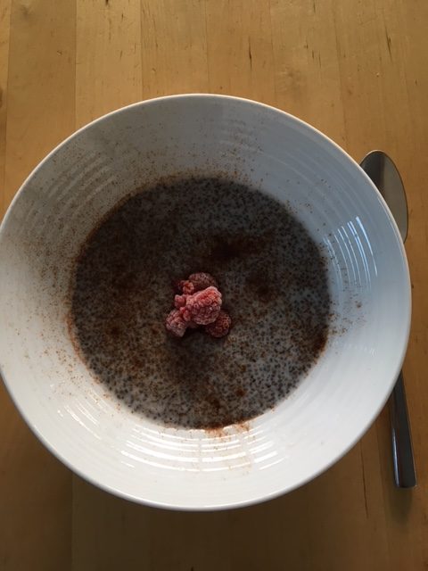 Perfect on the cold mornings we are still experiencing. Rich in Omega 3,fibre,calcium & iron this gluten and dairy free breakfast packs a punch. White chia seeds give a more authentic porridge look but black ones work just as well.