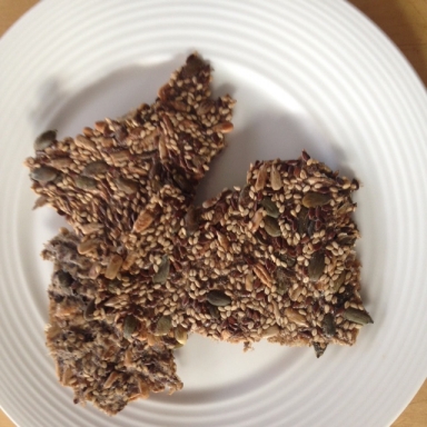 These delicious and nutrient dense seed crackers are nut and gluten free. They are also easy to make and are a very useful snack to have on hand. The recipe is from The Real Meal Revolution book by Noakes,Proudfoot & Creed.  The attached website can be found here.
